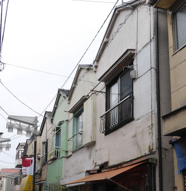 屋根が三角のレトロな四軒長屋。昨年のEXPOでは長屋をつなげるプロジェクトを展開した。キラキラ橘商店街の小道の一角で、昔ながらの商店とリノベーションされたお店とが融合する。リノベーションの先陣を切ったのは8年前共同でスタートしたサテライトキッチンの小畑さんとムームーコーヒーの灰谷さん。