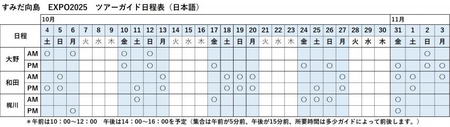 <ツアー催行スケジュール>