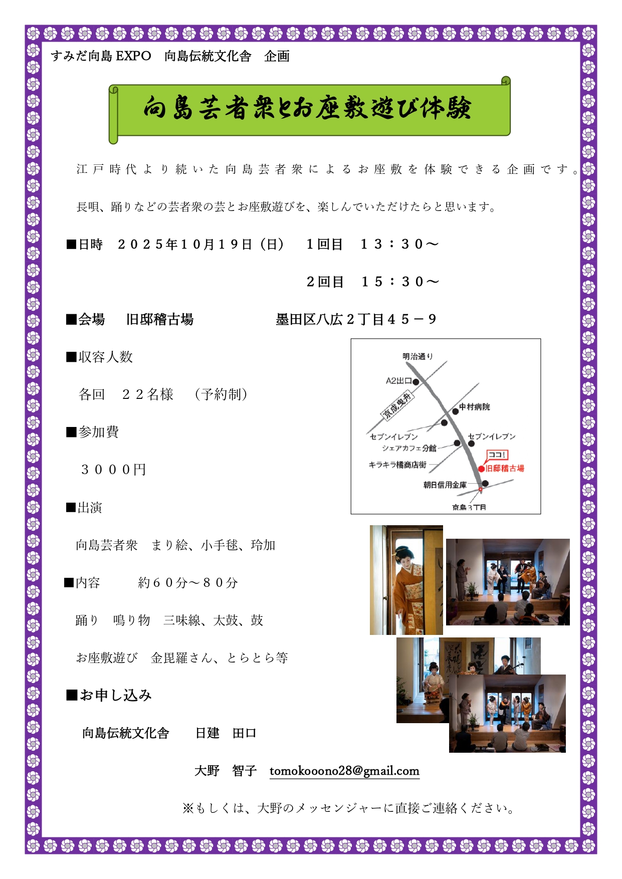 「向島芸者衆とお座敷遊び」 日時 2025年10月19日(日)