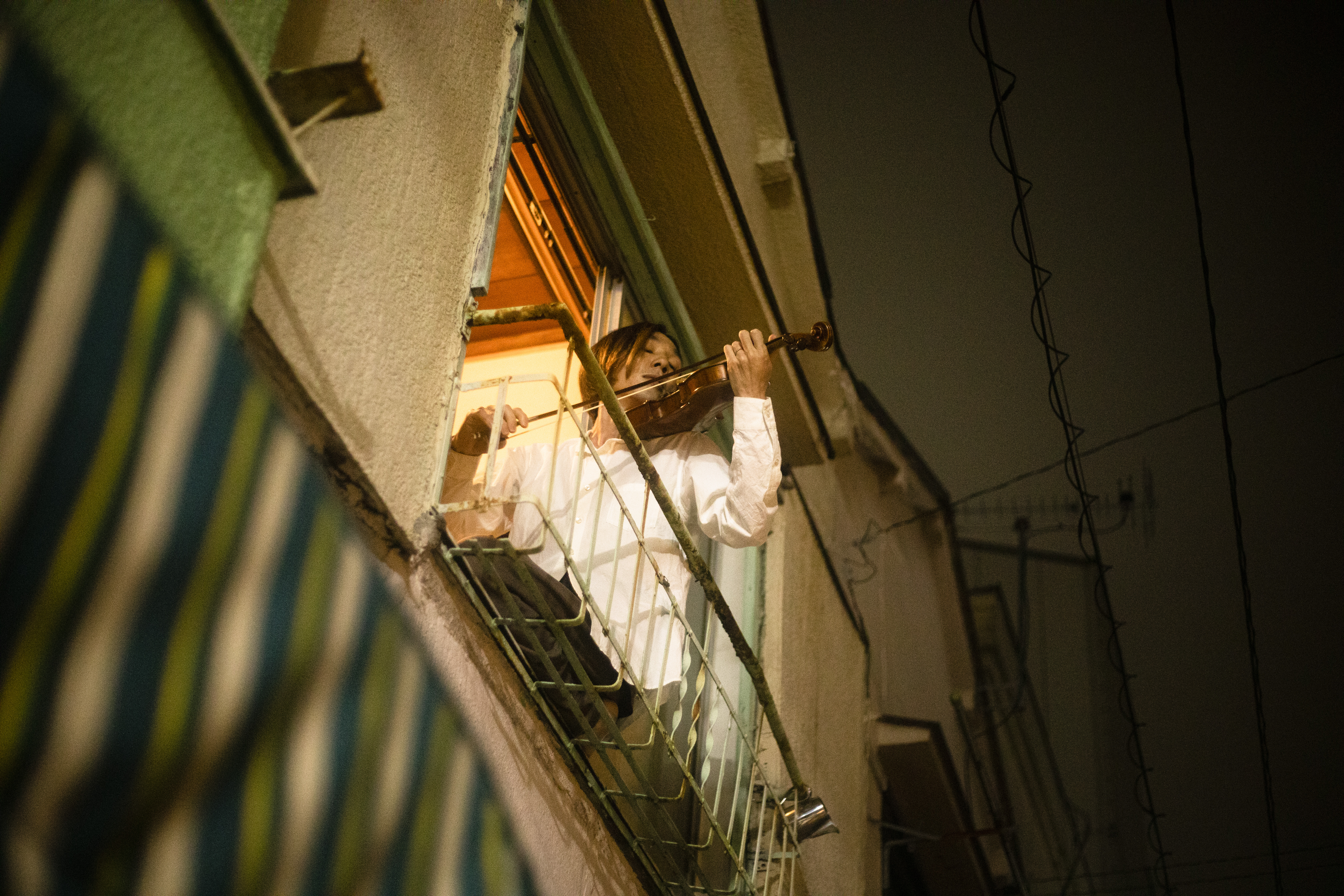 建物2階の窓辺より、ヴァイオリンと歌の生演奏で時刻をおしらせします。建物階下、路地や商店街よりご覧いただけます