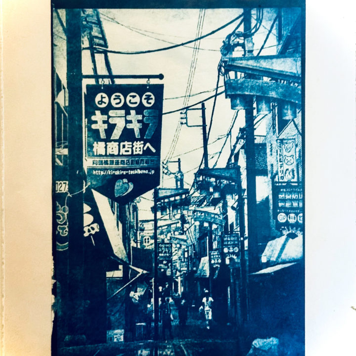 『向島EXPO 6』 エリアにて、スマホで撮った画像データから青写真を1枚つくります。その青写真を後から来る別の来場者へ渡すことで、この地域を回遊した記憶を受け伝えるプロジェクトです。出来上がった青写…