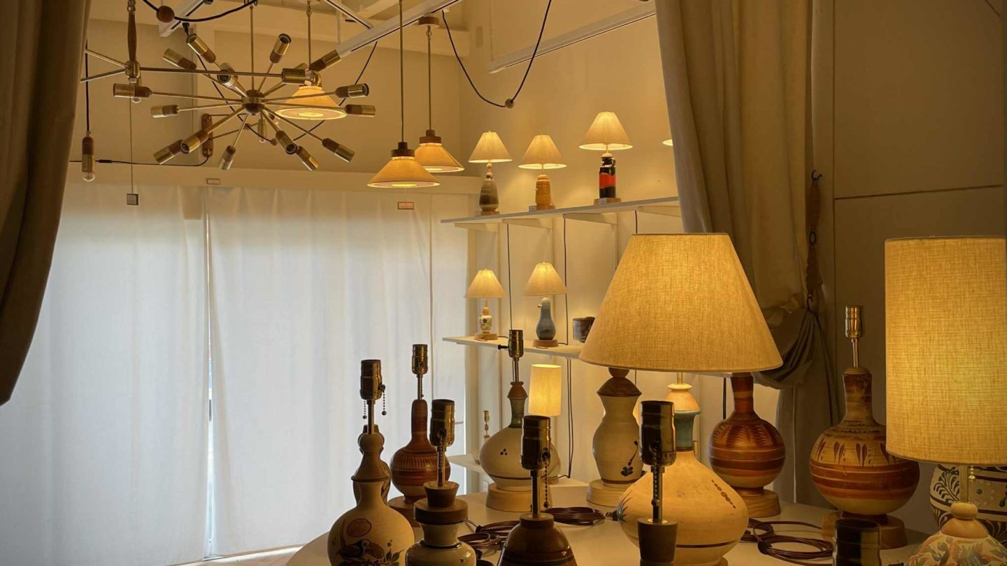 普段はカーテンが閉まっているアトリエ兼ショールームの公開、industで制作された照明作品を見る事ができます