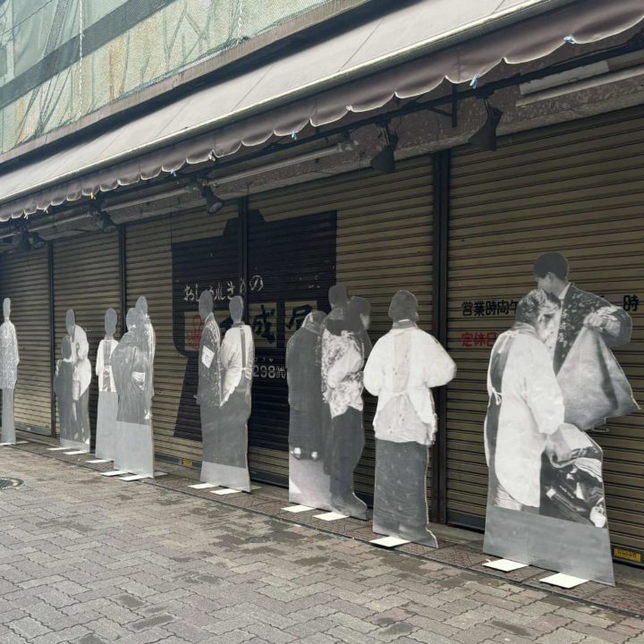 京島の少し昔の写真を素材として、まちに流れた時間や、まちの人々の記憶を再生し、共有する試みです。写真の中の人物の等身大パネルを制作するのが特徴です。引き伸ばされ、切り出された人物のイメージは身体性を帯…