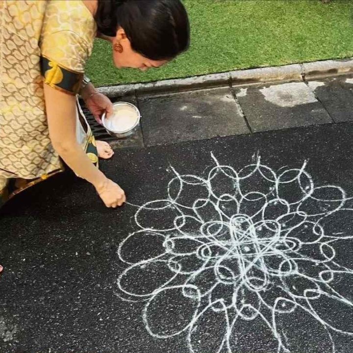 コーラムとはあらゆる存在との調和を願うインドの伝統。描く場所に縁がある方々との交流から生まれるコーラムは、伝統文化を超えた、その場所とのコラボレーションの花を咲かせます。…